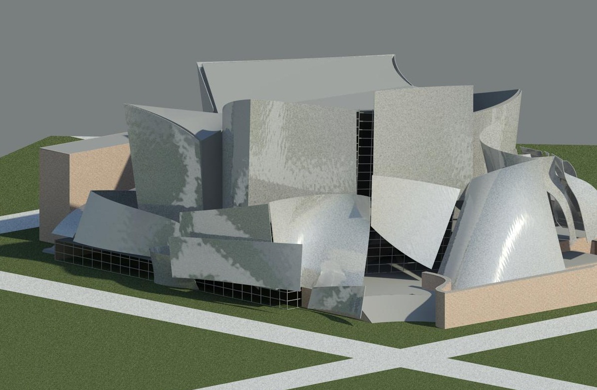 As it is obvious from the design of Walt Disney Concert Hall, regular Revit walls and roofs cannot mimic the irregular curves in this project.  To create a similar 3D model for this project I used Revit mass modeling feature.  In the Revit application using the mentioned modeling feature I tried to do the following steps to come up with similar curves for my model.  In these steps I: